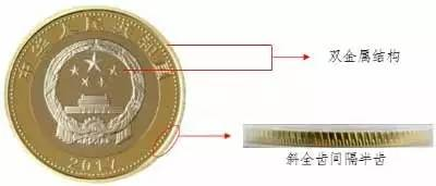 硬幣內(nèi)芯采用鎳帶復(fù)合白銅材料,具有弱磁性。