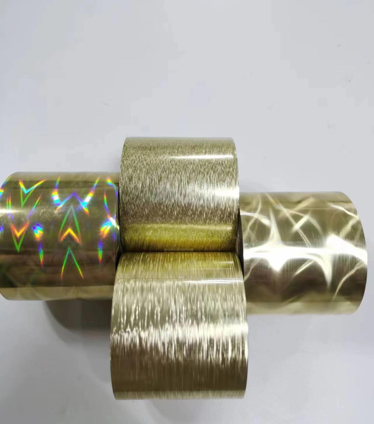 塑基燙金膜是電化鋁的一種,結(jié)構(gòu)、工藝流程都與普通紙基電化鋁相同,僅在包括離型層、保護(hù)層和背膠層的材料配方上有所差異。 通過使用不同種類的燙金紙,可以使多種材質(zhì)的塑料表面局部呈現(xiàn)亮金亮銀、金屬拉絲、半透明、鍍鉻以及類似于噴涂及印刷效果。